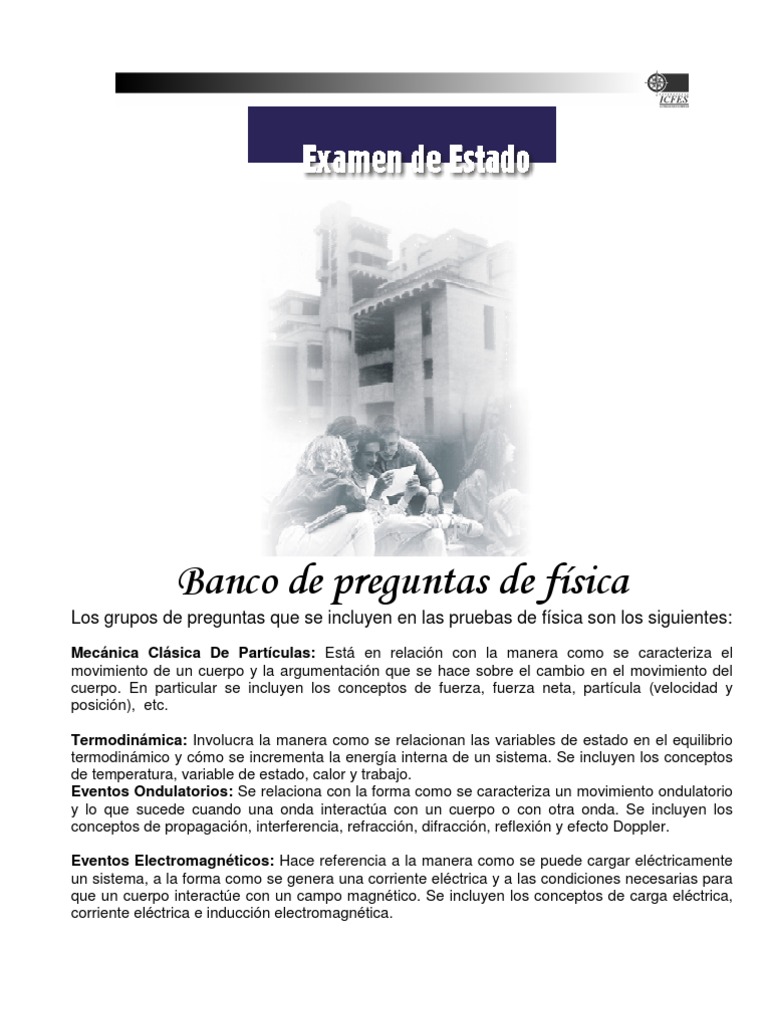 Primer cuestionarioelmotor de gasolina examenes tipo icfes fisica 1. Son más de 60 preguntas con sus respuestas correctas. El icfes ha elaborado un guion para aquellos interesados en replicar la jornada de divulgación realizada con madres, padres y cuidadores, cuya presentación se encuentra en este mismo apartado. Preguntas tipo icfes selección multiple con unica respuesta. Un estudiante dispone de dos bombillos, dos roscas para bombillo, una pila y alambre suficiente. Estas preguntas, utilizadas en las pruebas de historia, geografía, filosofía, violencia y sociedad, constan de este tipo de pregunta se dejó de utilizar en la prueba icfes desde el 2011, aunque se. La palabra nace del griego que traduce: A continuación se presentan ejemplos de preguntas de las categorías contextuales mencionadas. Esta herramienta fue diseñada para despertar en cada uno de los estudiantes curiosos e insatisfechos esa técnica del éxito necesaria a la hora de enfrentar una prueba. A continuación mostramos la solución de las preguntas en el área de matemáticas que el icfes difundió el día 20 de julio de 2014 a través de los periódicos. Proceso vital por el cual se perpetúa la vida y se conservan las especies se llaman: Todo sobre las pruebas icfes saber, conozca las el área de profundización que escoge una persona supone un grado de dificultad mayor al resto preguntas del núcleo común. 19 de febrero de 2013.